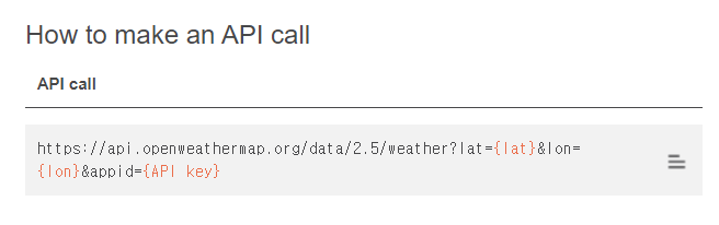 4. Weather API 호출하는데 필요한 URL이다