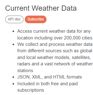 3. Current Weather Data API 를 찾는다