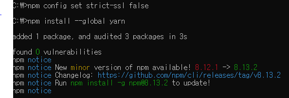 - error An unexpected error occurred: "https://registry.yarnpkg.com/react: self signed certificate in certificate chain". 에러 발생시