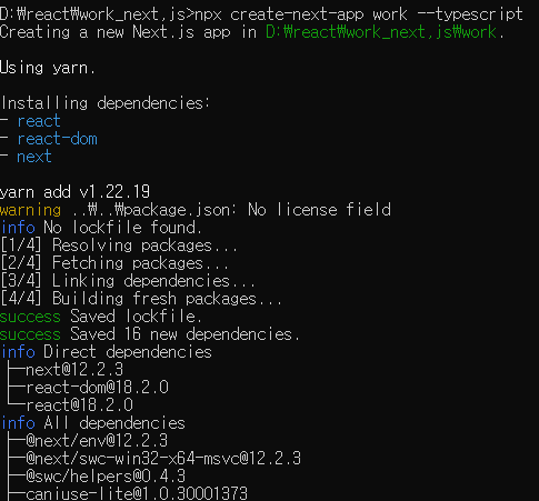 해당 명령어 입력 후 해당 폴더에 next.js 설치~